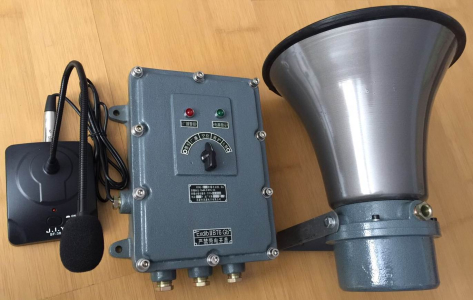 GJ—1型防爆广播报警系统由HZBQ-3B型防爆广播报警器(防爆电话机)和dYH—5型防爆扬声器(防爆喇叭)组成,也可加入防爆警灯,构成声和光同时报警。该防爆广播报警系统把广播呼叫和报警功能融为一体。把旋转开关扳到广播档位,对着麦克风(话筒)讲话,可以通过防爆扬声器(防爆喇叭)对现场进行广播呼叫,发布生产指令;把旋转开关扳到报警档位,可发出声光报警信号。该防爆广播报警系统有三种声报警信号,以适应各种不同的报警功能。该防爆广播报警系统也可同各类火灾报警控制器或其它控制器配合使用,当生产现场发生事故或火灾等紧急情况需要发出声光报警信号时,火灾报警控制器送来的开关控制信号也可启动报警电路,由防爆扬声器发出警报声,由防爆警灯发出闪烁的光报警信号。也可同手动报警开关配合使用,构成简单的防爆报警系统。